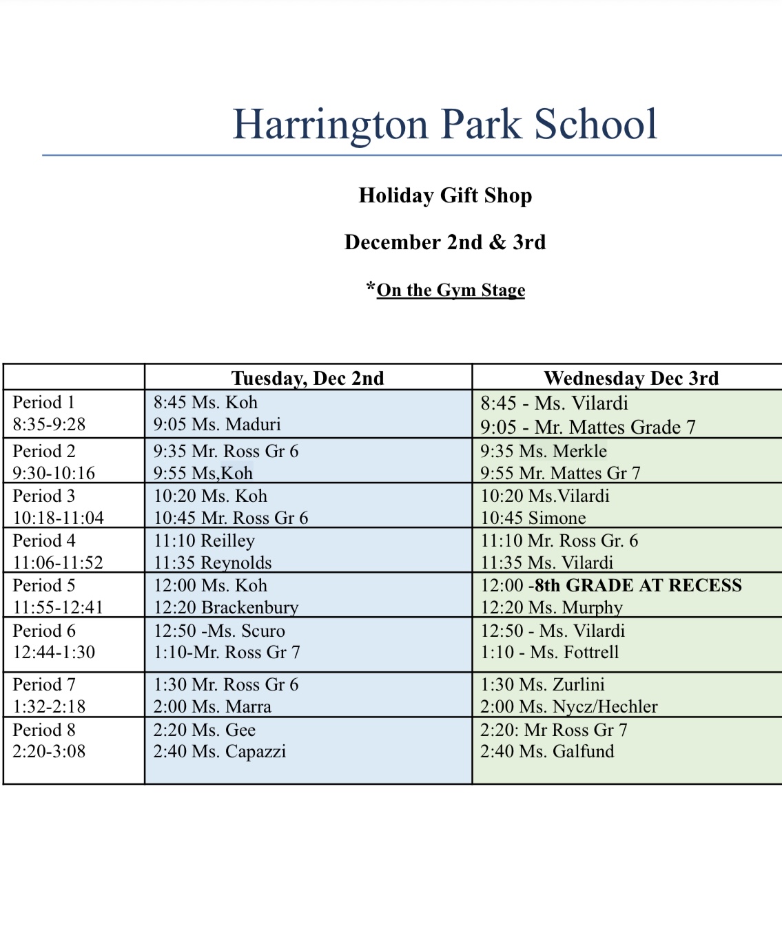 -December 2nd & 3rd - HSA Holiday Gift Shop - Schedule to Follow